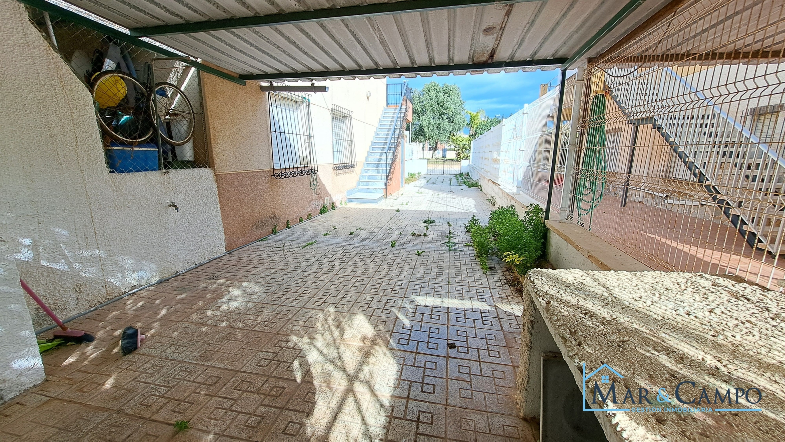 Outdoors, the home offers a terrace and a spacious garden with capacity to park three to four vehicles, as well as a covered area with the possibility of being enclosed and converted into a garage, adding significant value.